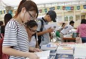 Độc giả tham khảo những tác phẩm tại Hội chợ sách Hà Nội. Ảnh: Thanh Hải |